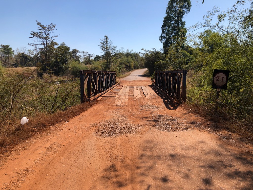 I gave up in the highway when I could and veered off toward the Mekong. Got more scenic for sure, with some old bridges that I will load eventually from the GoPro. The road was awful however and too long on the pegs wrecked my bad knees.