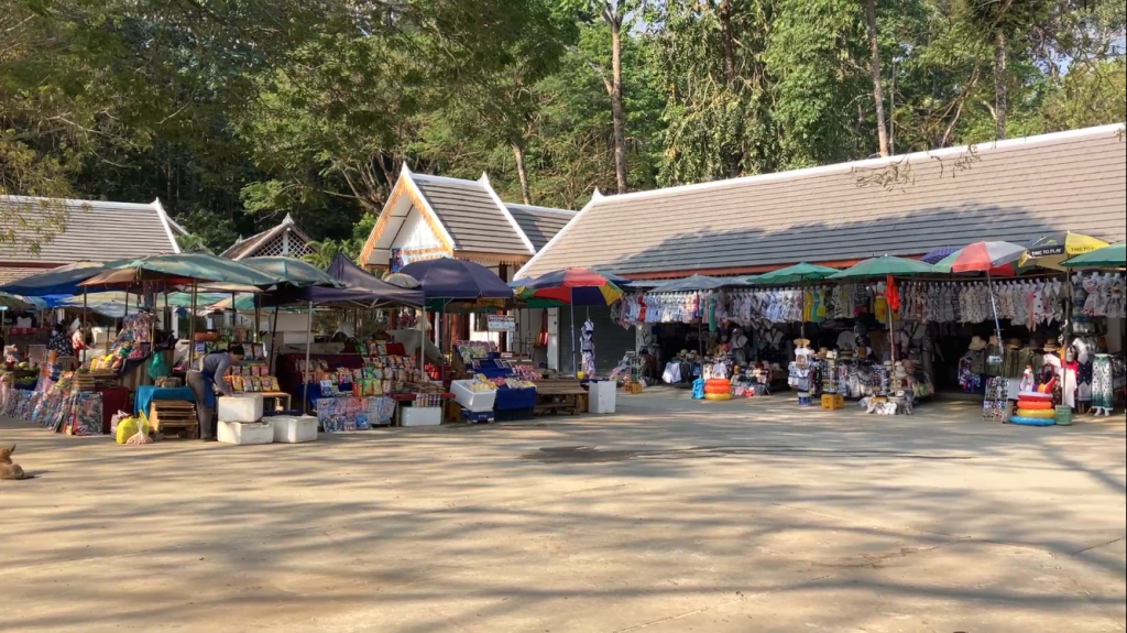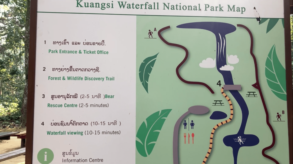 Parking is a couple of km away, where you get your entry ticket 25,000 kip for foreigners, so about US$1.25, which includes an electric cart which brings tourists to the entrance site.
